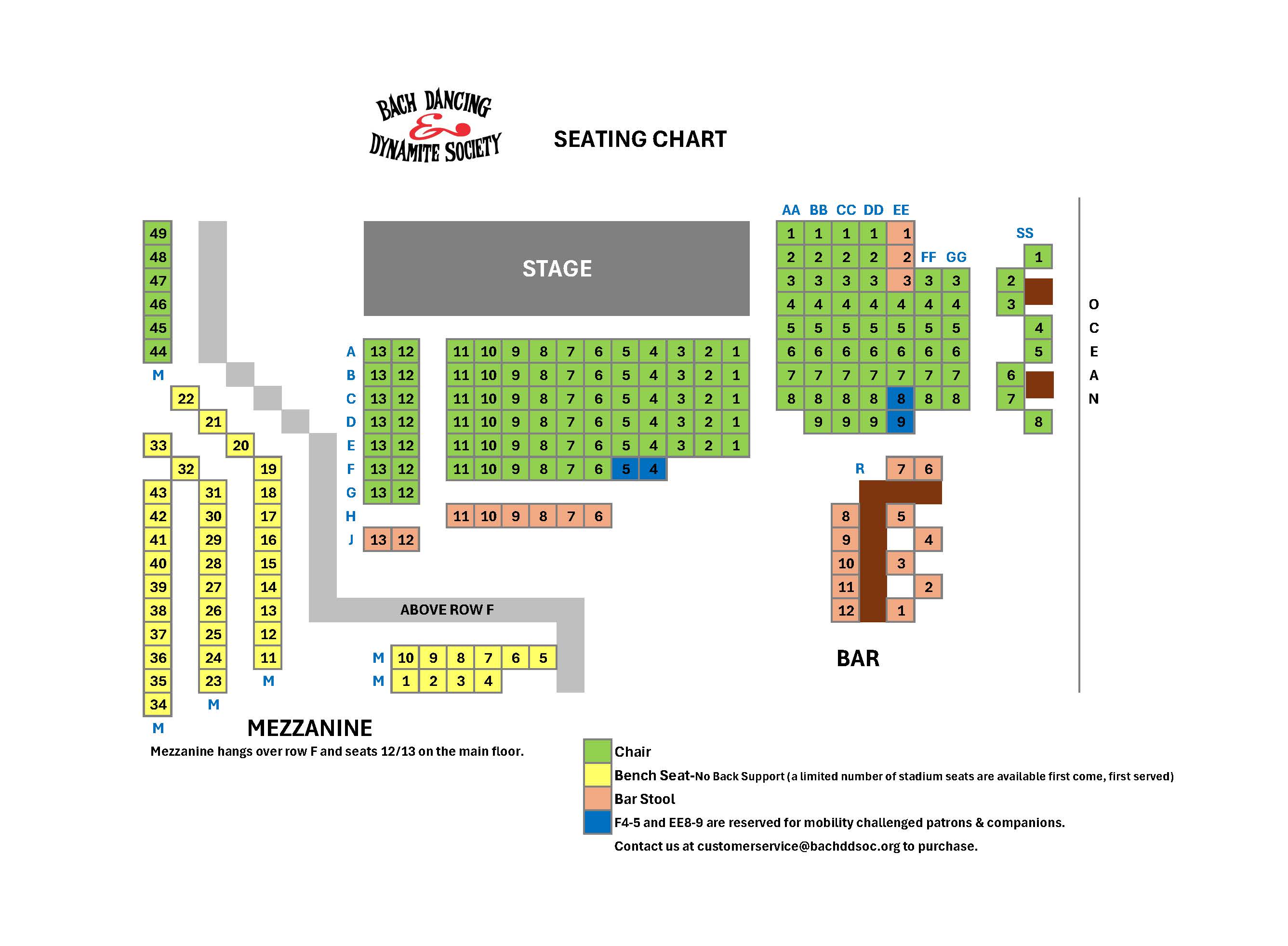 Seats are selected and reserved at the time of the online purchase. DOWNLOAD pdf of seating chart.